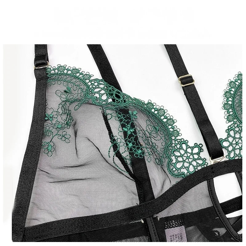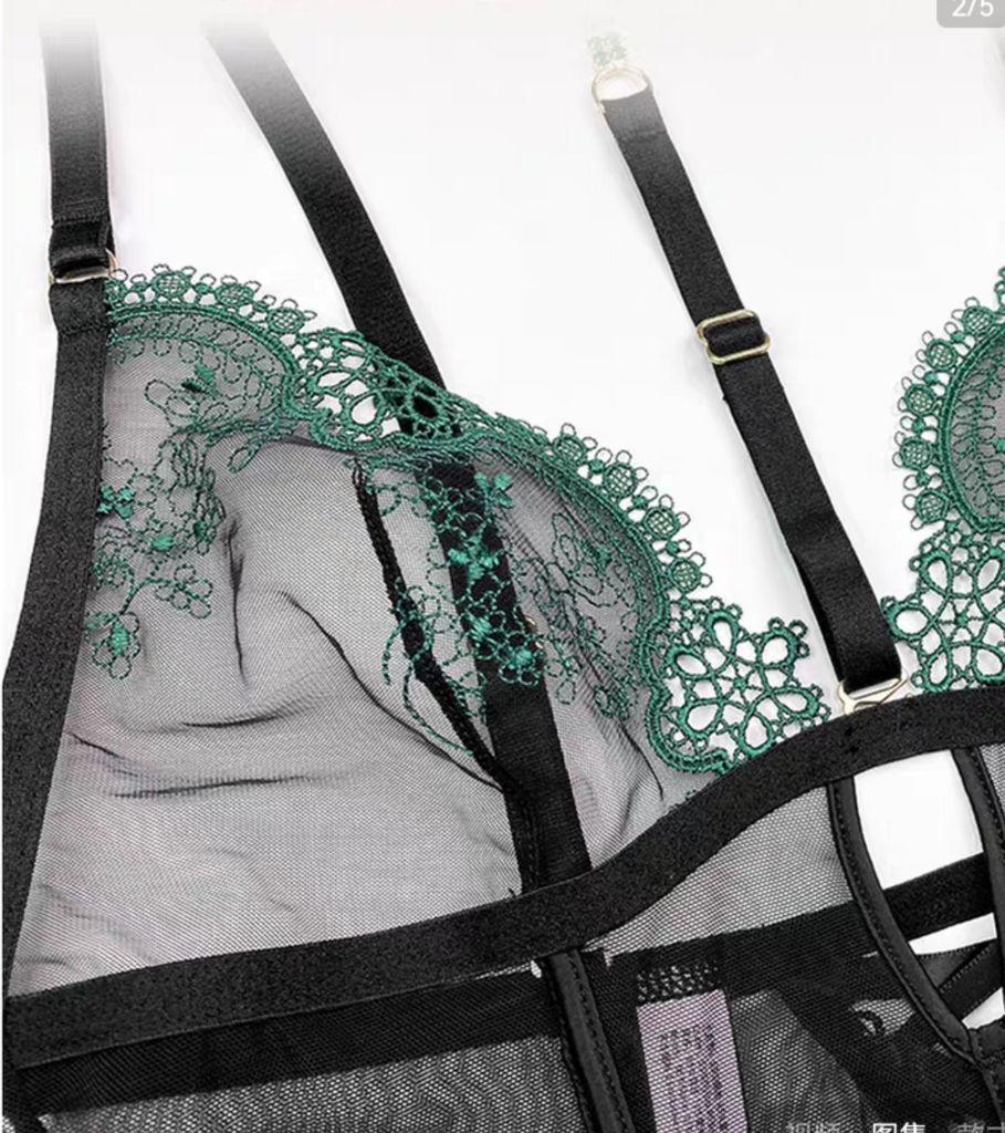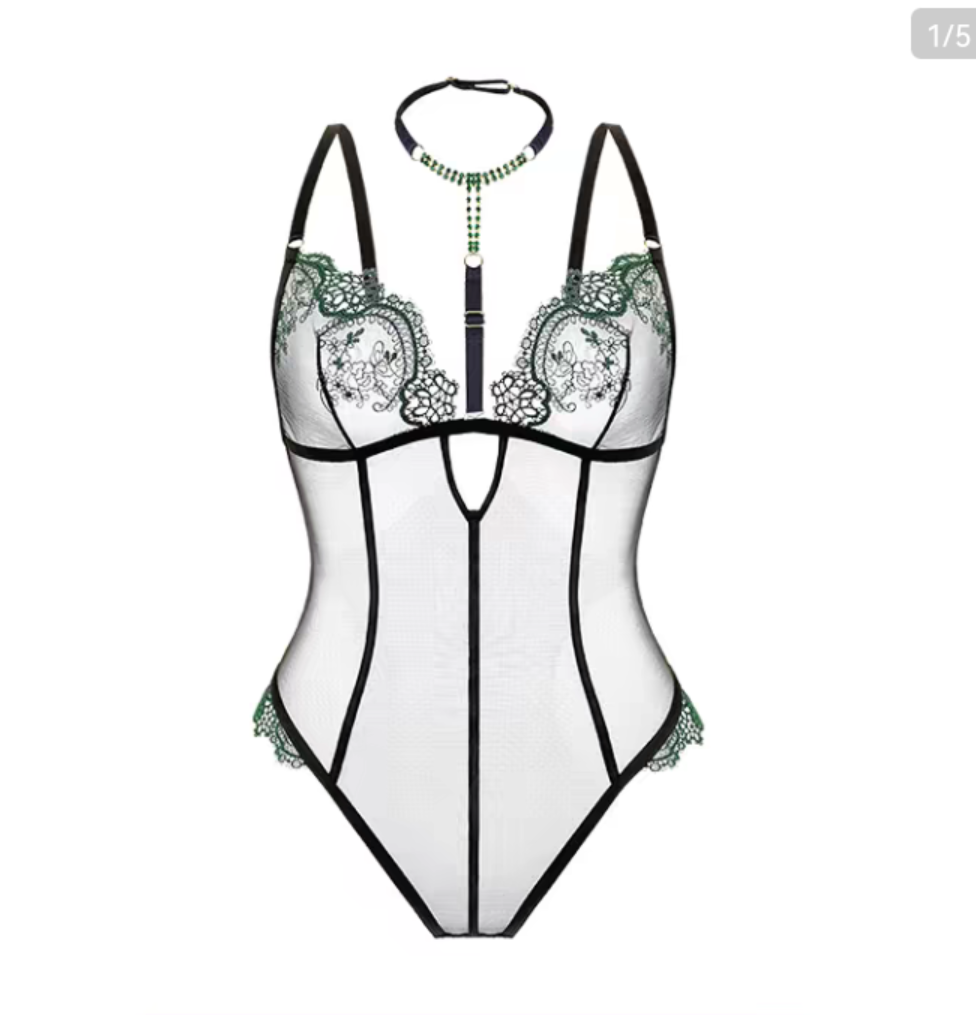 Wrap yourself in luxury and elegance with our Women Black Teddy with Green Embroidery Lace. Made with the finest materials, this teddy features stunning green embroidery lace for a touch of sophistication. Embrace your femininity and feel confident in this stylish piece.